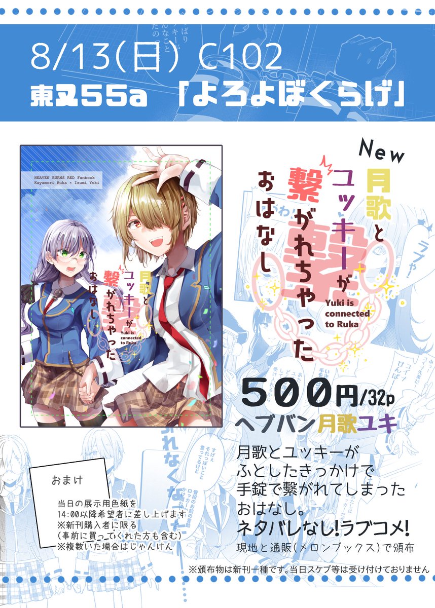 C102お品がきです。ヘブバン月歌ユキ! 【新刊サンプル】pixiv.net/artworks/11040… 【通販】melonbooks.co.jp/detail/detail.… 当日は手塚司令官のコスプレイヤーさんが売り子でいます(※男性です)