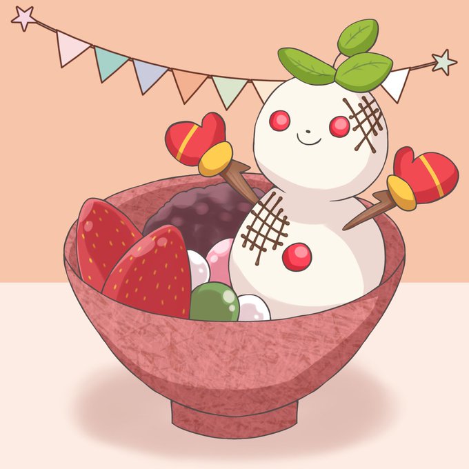 #モンスト深夜のお絵かき60分一本勝負 主催者様 @mnst_onedro お題→ 光属性モンスターの火属性風アレンジ 火属性風モチモチンナちゃんで久々の参加です🙇♀️ 苺あんみつっぽくしてみました。