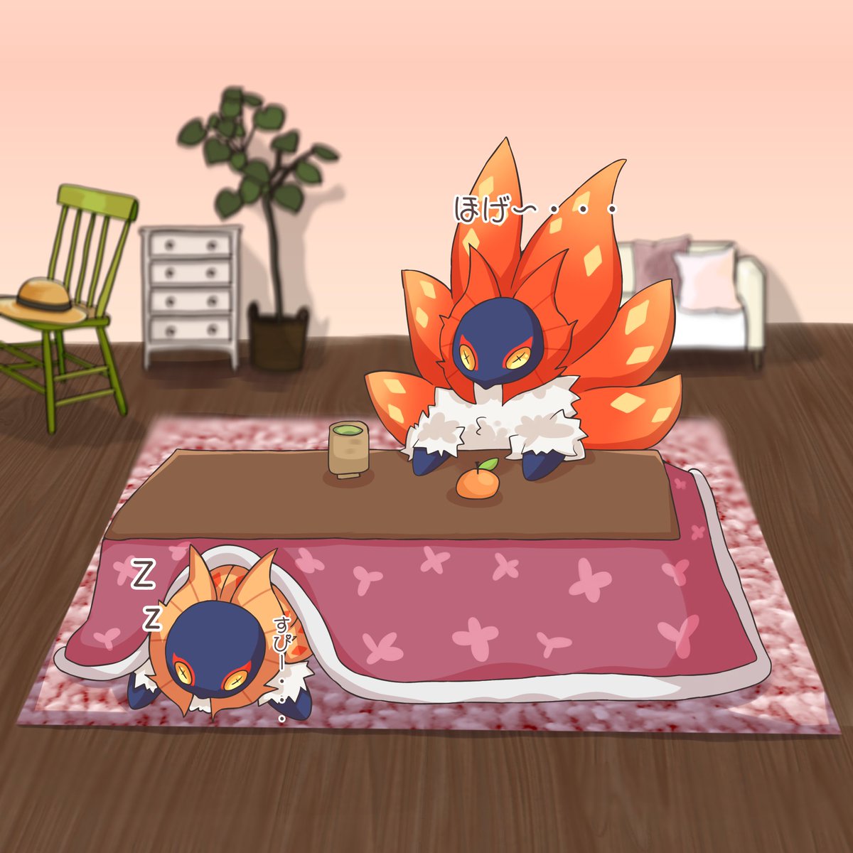 #モンスト深夜のお絵かき60分一本勝負 主催者様 @mnst_onedro お題「公式から受けるイメージを180度転換させたイラスト」 公式設定で火山に住んでいるハーミィちゃんですが、もし逆に雪山に住んでいたら…と想像しながら描きました🌋⇔❄️