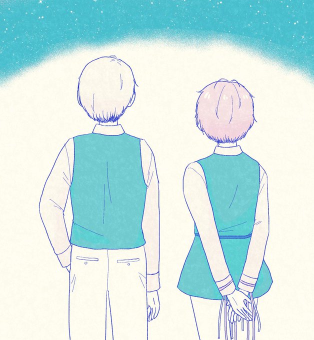 2 3 52日目 志津兄弟が並んで立ってる後ろ姿を眺めたいなと思ったけどうまく描けなかったので色を塗る努力も放棄しました……精進します #100日チャレンジ 23/07/05 23:38