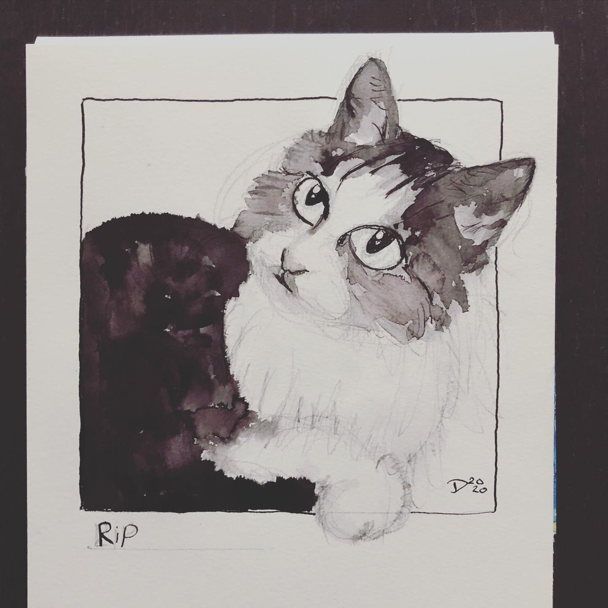 Lieve Minas, al twee jaar terug dat ik afscheid van deze lieve kroelkater moest nemen #cataday #catober #CatsOfTwitter #drawing #inktober2020 #RIP