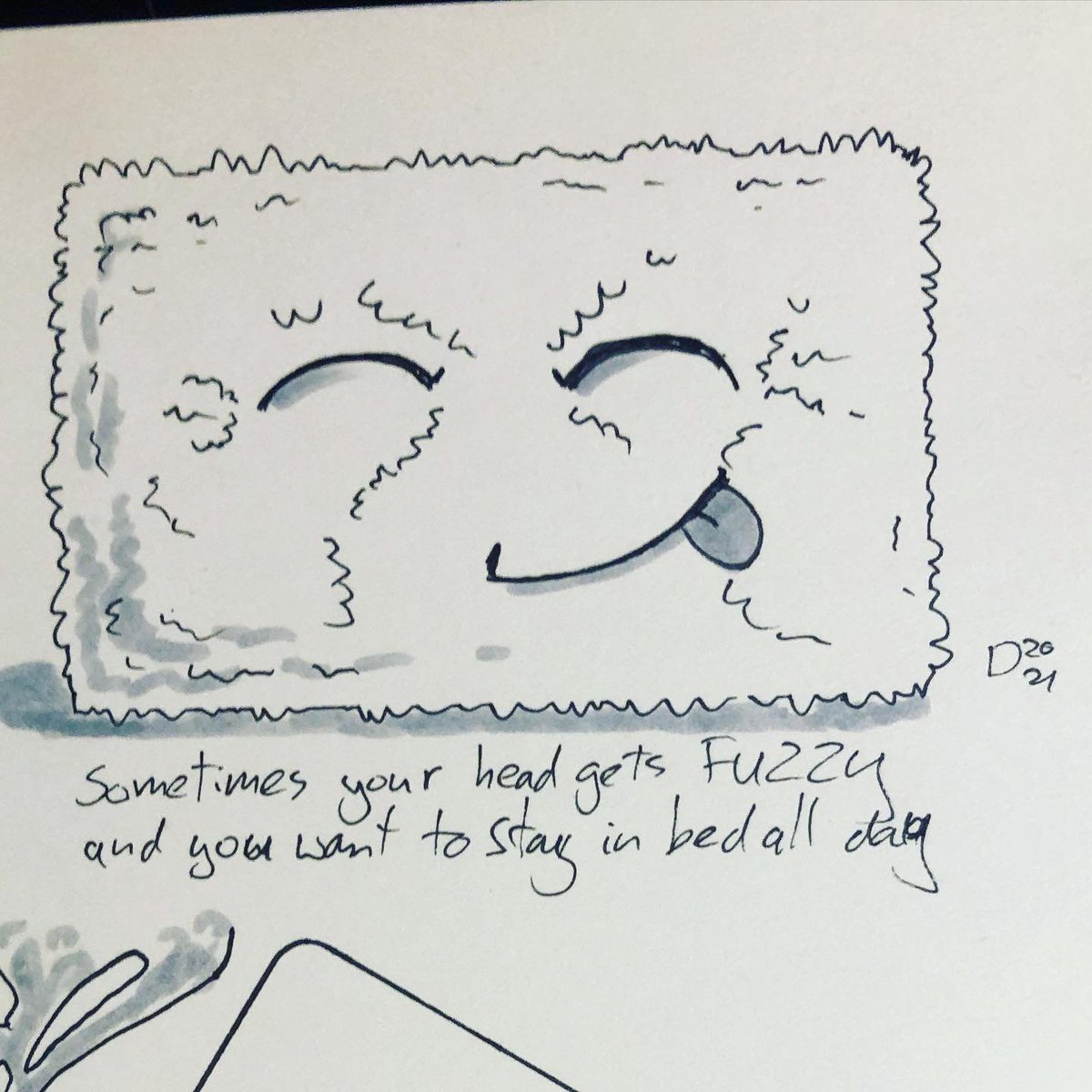 Sometimes your head gets fuzzy and you want to stay in bed all day #inktober2021 #fuzzy #inktober2021fuzzy #ink #drawing