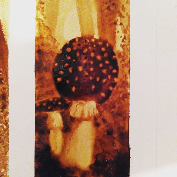 Gister een experimentje met Zout, want het woord van de dag was Salty, vandaag is het woord Scrape, dus ben ik maar gaan schrapen, best wel een dikke laag koffie #inktober #paddestoelen #koffietekeningen