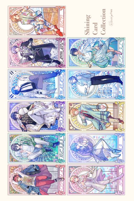 お誕生日絵11人揃いました!ミュシャ風絵好きなので楽しかったです✨ こういうShining Card Collectionとか出てほしい🙏