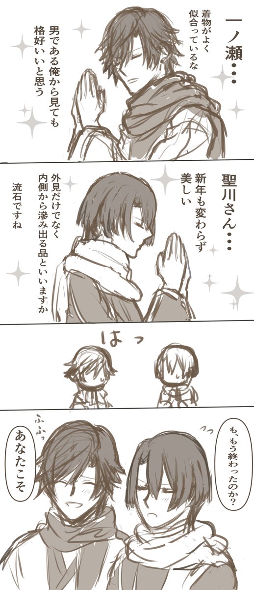 お題「新年」「お互いさま」で描きました☺️お互い見惚れ合ってたらいいよ #寒色_ワンドロワンライ_0429