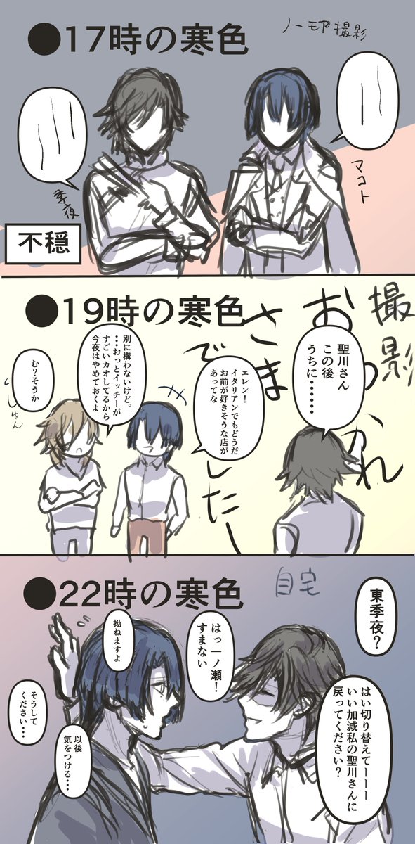 28 274 ワンドロお題「○時の寒色」「ステージ」で描きました~ 役を引きずるタイプの真斗くん…🤦 このトキマサは付き合ってる #TM_ワンドロワンライ_0429 23/02/24 23:30