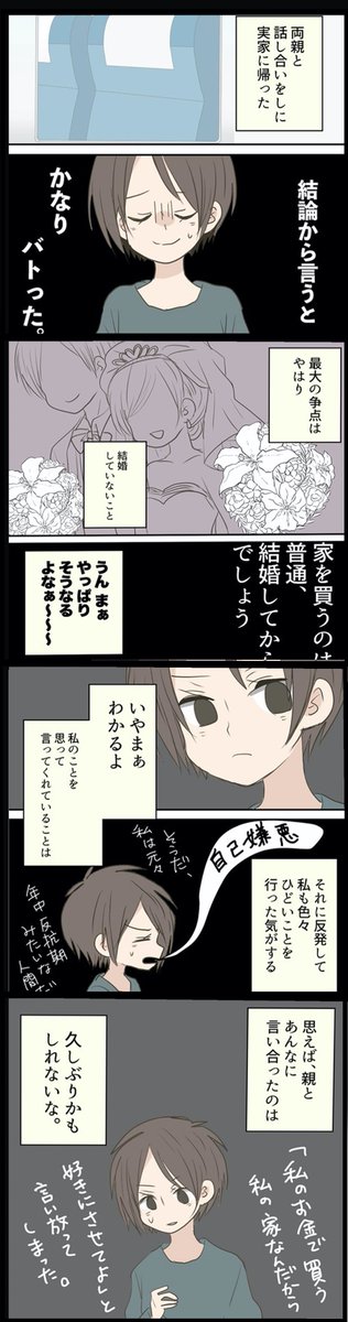 25歳独身女のマイホーム購入話(21/32) 居を構えるにおいて実家の存在は、悩ましい案件だと思う。特に地方から都会に出てきた者や、きょうだい全て地元を離れた場合には。 #コミックエッセイ #漫画が読めるハッシュタグ #実録漫画