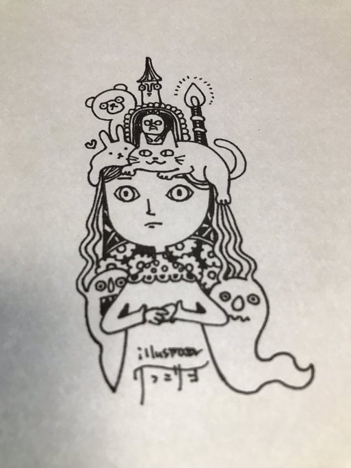 ゆらゆら たまゆらちゃん。 サインは自画像の中に描きました♪ #ペン画 #コピックイラスト