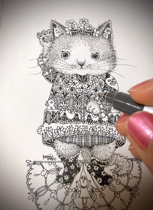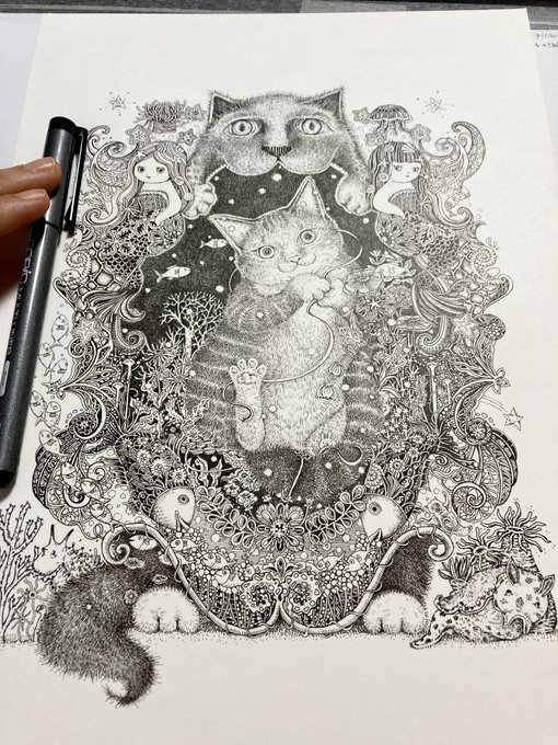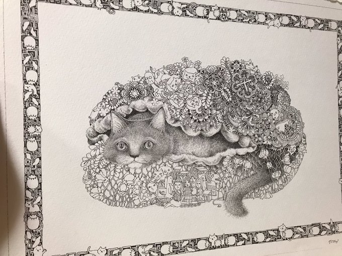 1 33 今日ギャラリーゴトウさんでの個展の最終日(16:30まで)です☺️搬入前におうちで撮った作品画像をのせます。 #ギャラリーゴトウ #ペン画 #猫イラスト 21/06/27 11:28