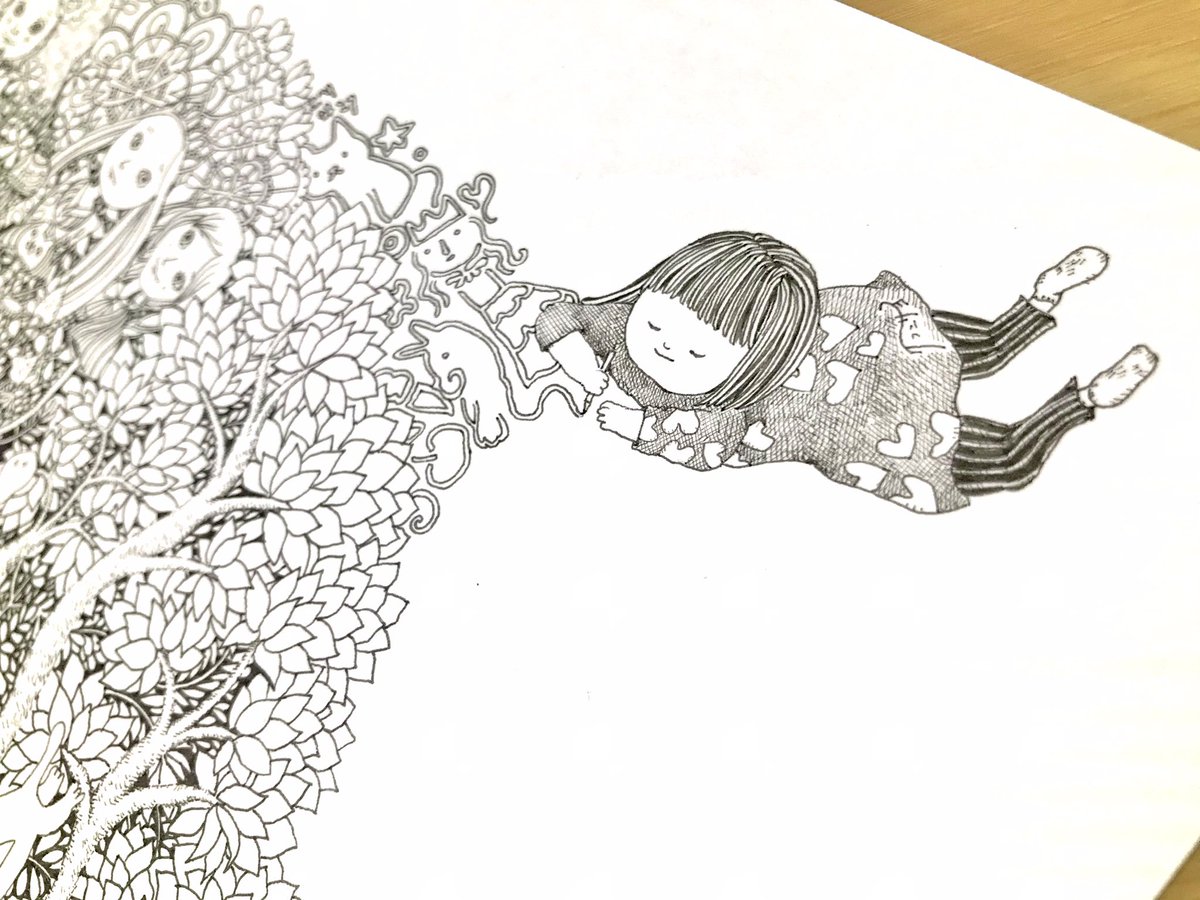 描くのは楽しいし、一枚に何日もかけて描くのも好き。でもあと2ヶ月しかないのにどうやって個展枚数分描くのか😥計画通り書けないし手も抜きたくないしどーしたらいいんだー🤯 画像はやっとできあがりそうな絵。 #ペン画