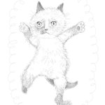 何かに挟まれてるヌコ🐈ホルモン注射してもらったら何故かお腹のハゲからふさふさ毛が生えてきたちーちゃん。注射関係あるのかな🤔 #ペン画 #猫のいる暮らし