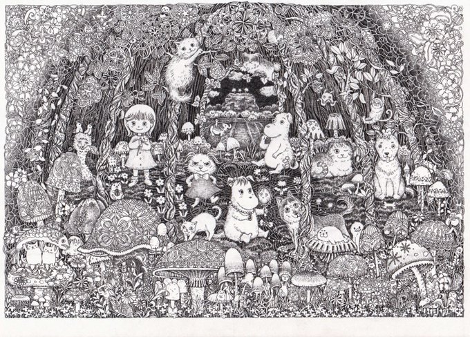 4 35 オーダー作品が完成しました。キャラクター設定と世界観はご依頼主さんからのご提案でお話を聞きながら作り上げていきました。奥の方に見える景色はシギリヤロックです。 ムーミン作者のトーべ・ヤンソンさんが大好きなのでこんなオマージュが描けて楽しかったです✨ #ペン画 #手描き 22/01/08 22:47