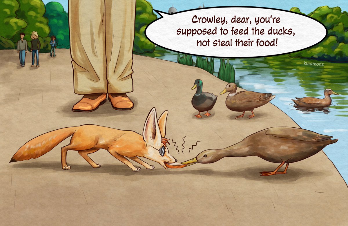 Hope we will get new pictures of duck feeding scene! #GoodOmens #GoodOmensFanart twitter.com/neilhimself/st…
