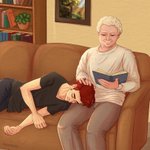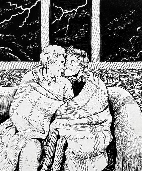 Crowley sleeps on top of Aziraphale, while Aziraphale reads a book. They are just enjoying the things they like: reading, sleeping and being together ❤️ #GoodOmens #GoodOmensFanart #ineffablehusbands