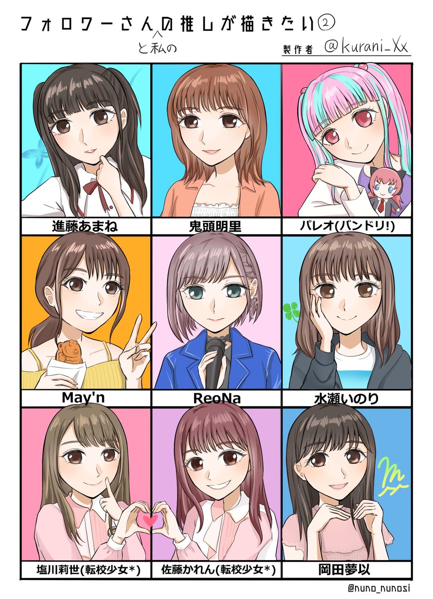 #フォロワーさんの推しが描きたい その2です 10~13人目!半端なのでReoNa以降は私の推しで埋めた😌 圧倒的三次元率 twitter.com/kurani_Xx/st…
