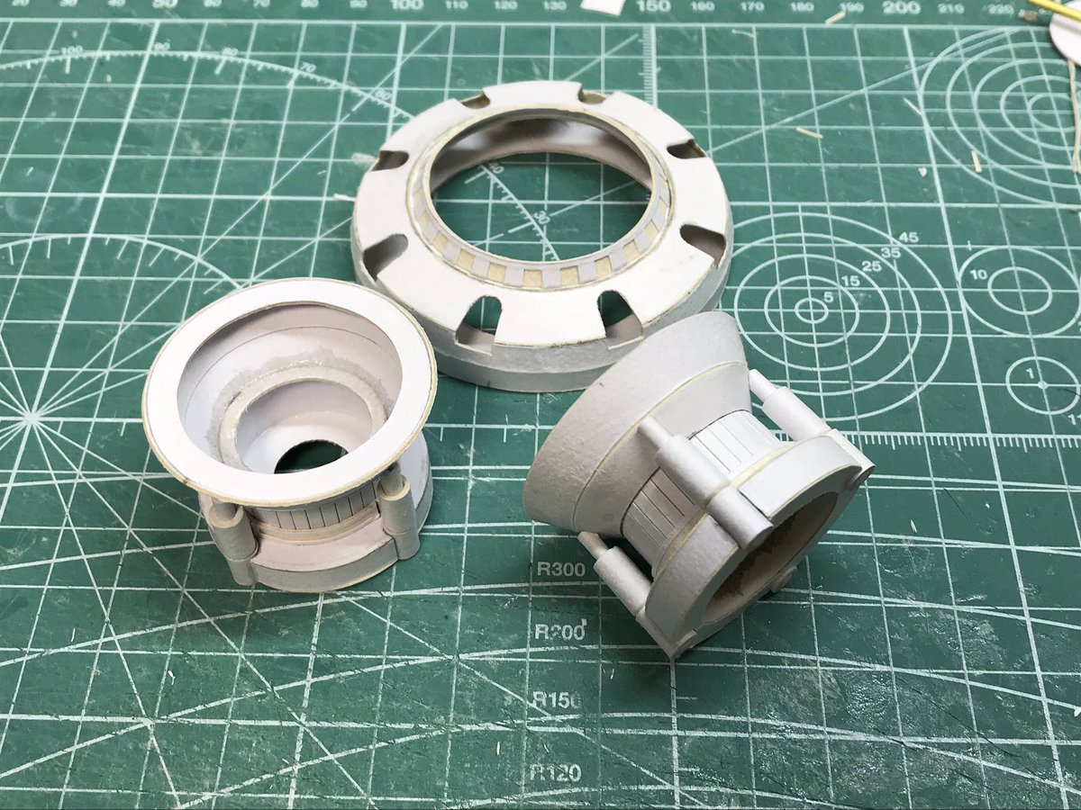 配線装飾ゴチャらせて、モニターを除いたコクピット内装が完全に完成(OvO) 久し振りにカメラアイ引っ張ってきてハッチ製作中