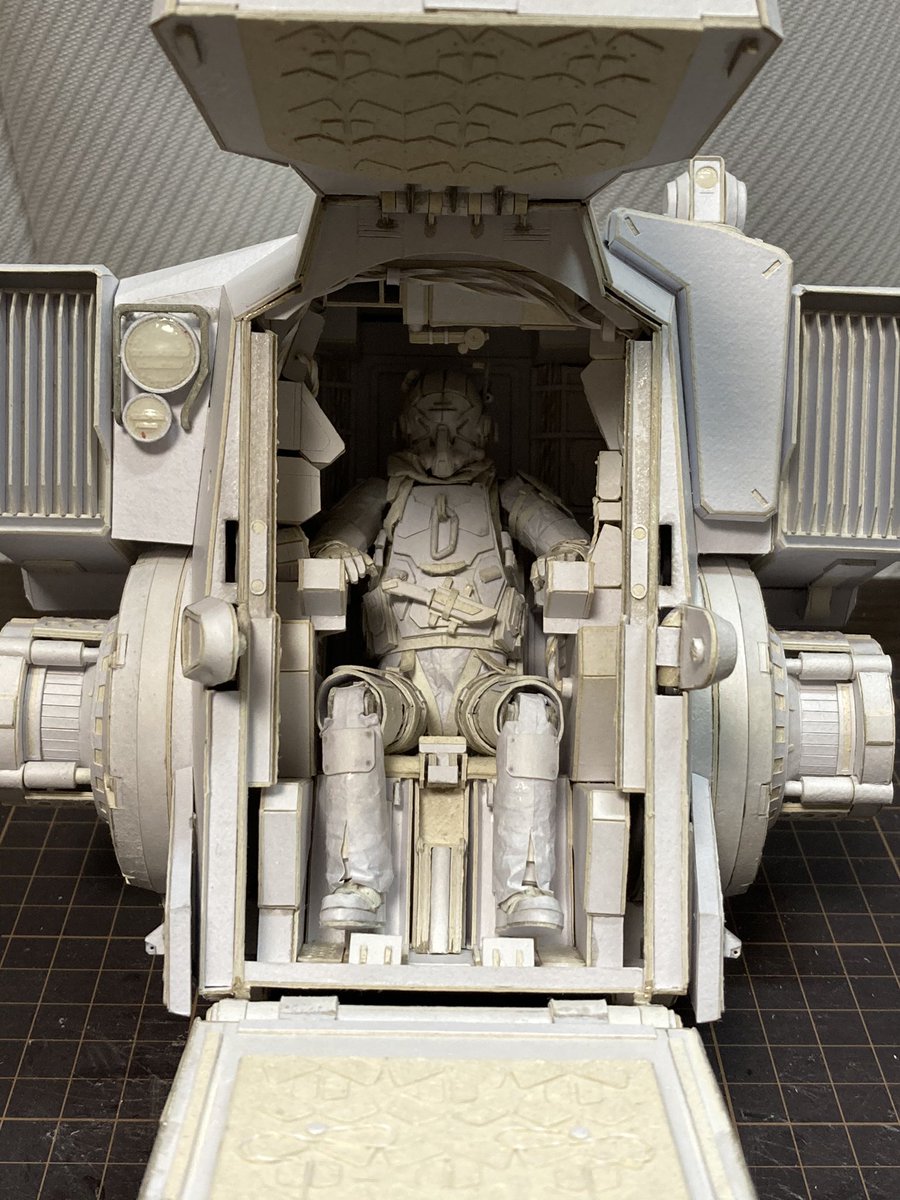 コクピットを外形に合わせて形作るっていう並行作業がキチィ… 「外殻は造形する、内装も作る、両方やらなくっちゃあならないってのが紙工作師の辛い所だな…覚悟はいいか? オレはできてる(吐血)」