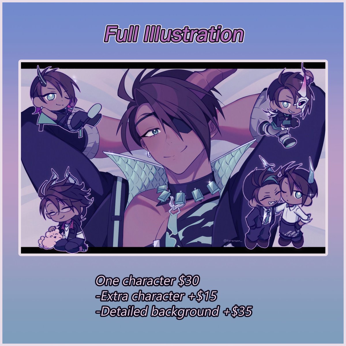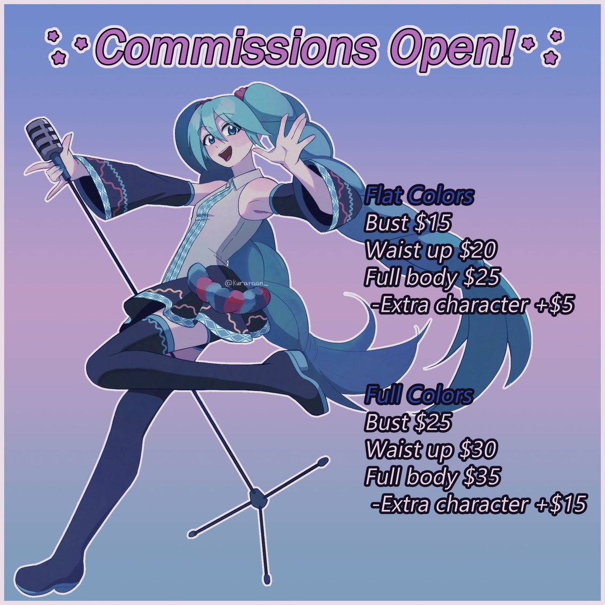 Updated commission chart, prices are still the same. 🩷✨ You can see more examples on my card >>> kurainfo.carrd.co #commissions #commissionsopen #digitalart