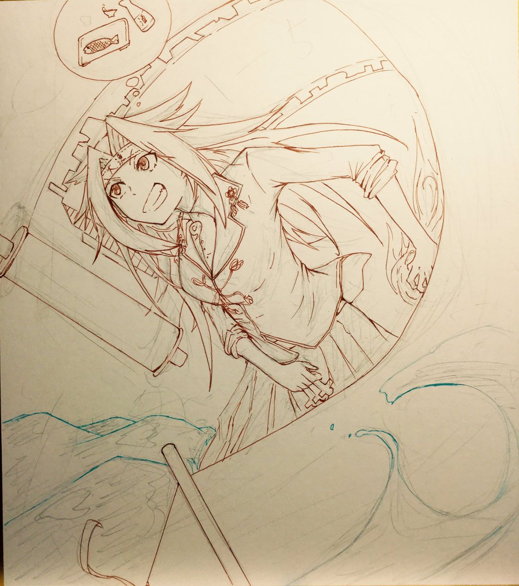 お酒のお供を調達するため、張り切って1-5に出撃する隼鷹さん #艦これ版深夜の真剣お絵描き60分一本勝負 #艦これ版真剣お絵描き60分一本勝負_20161022