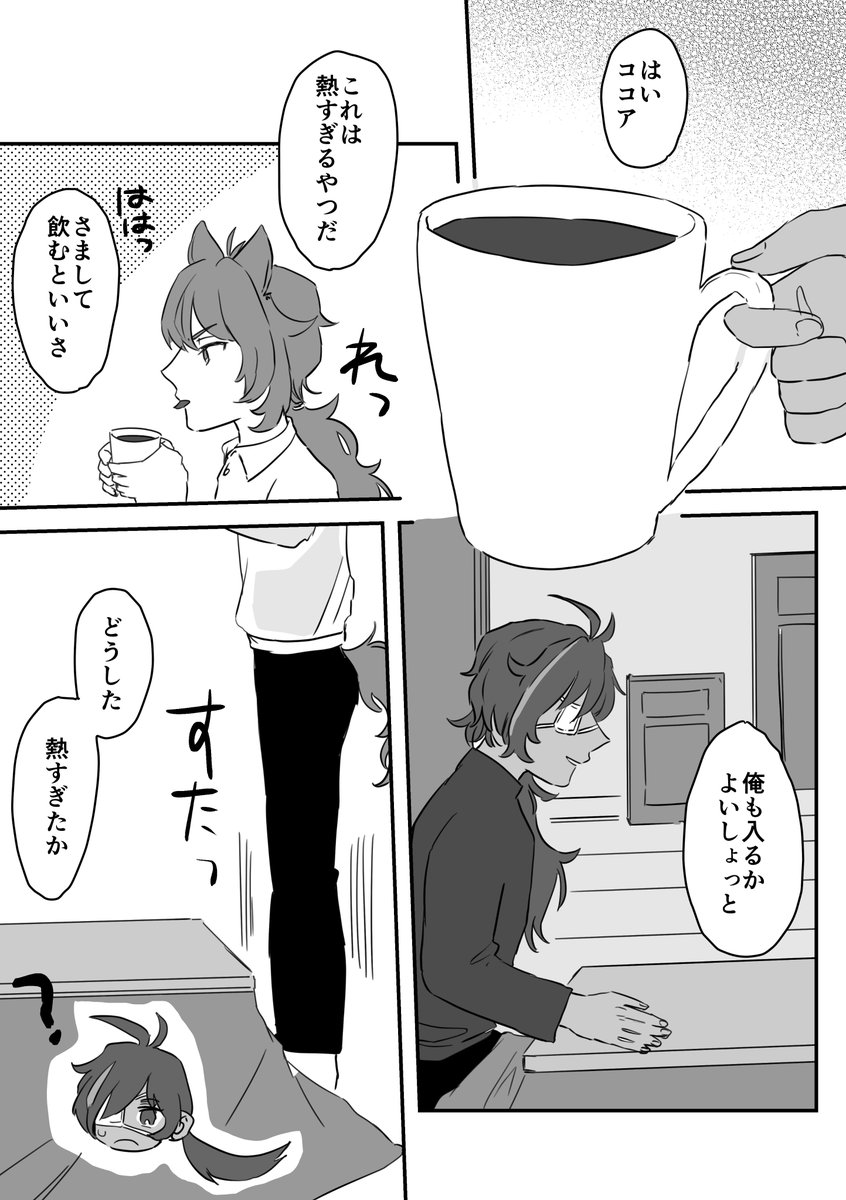 25 97 リクエストいただいた冬のにゃルックくん描きました 雪もココアもこたつも全部入れちゃいました!ガイディルです! twitter.com/kuratachaaaan/… 22/01/28 19:57