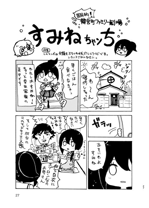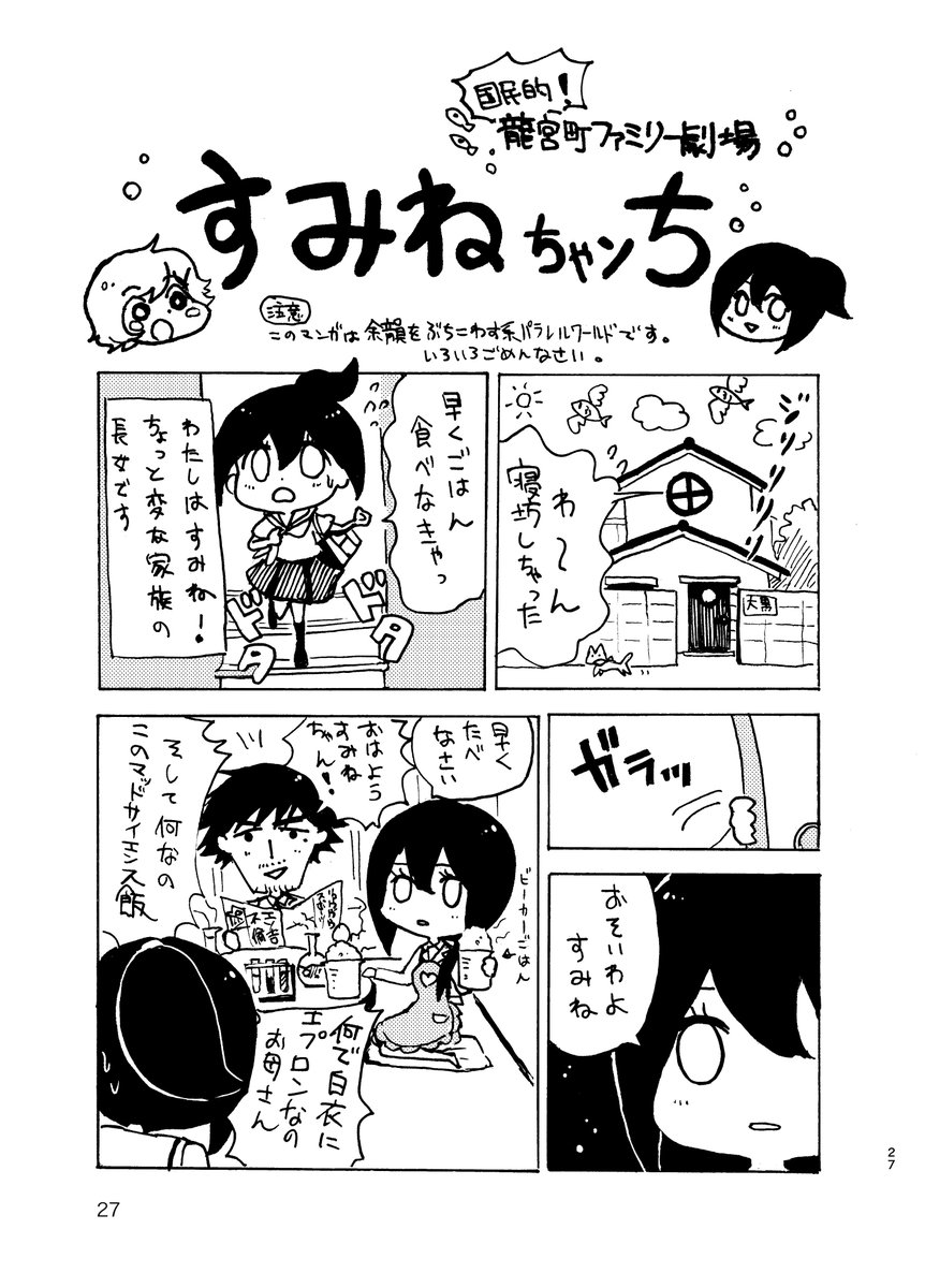 【龍宮町Depths第6回更新※ラスト】 ラストのおまけ漫画。ほのぼのファミリー漫画時空の龍宮町です。どっかで見たことあるのは気のせいです 龍宮町Depths⑥龍宮町ファミリー劇場「すみねちゃンち」 | 宵町めめ #pixiv pixiv.net/artworks/10060…