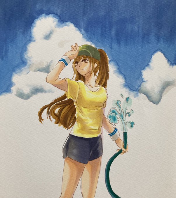 夏の昼間。空が塗りムラ出たのと、水の表現があまりうまくいきませんでした。広い面積塗る前は溢れそうなくらいインクを補充しておくべきだな…でも服は上手くできたと思う!#イラスト好きさんと繋がりたい #絵描きさんと繋がりたい #イラスト #コピック #アナログ