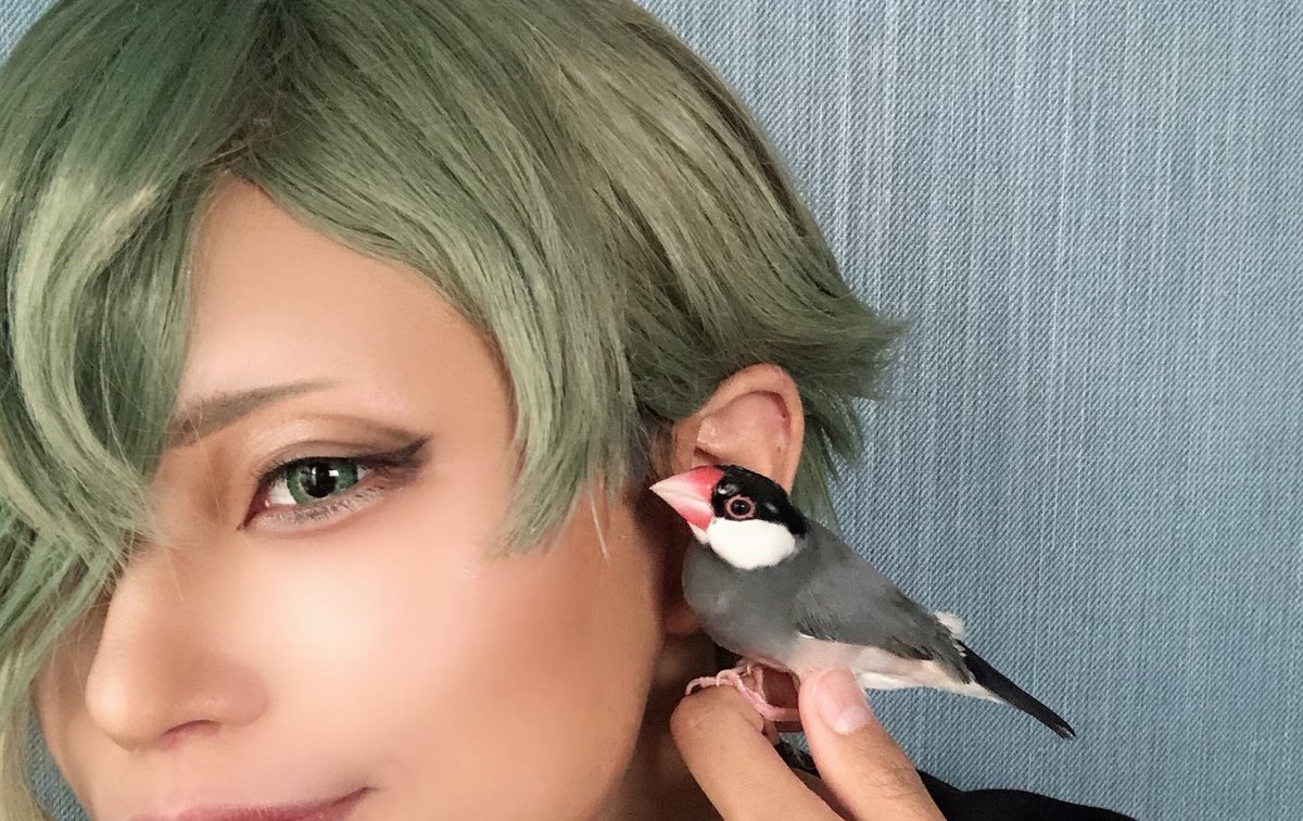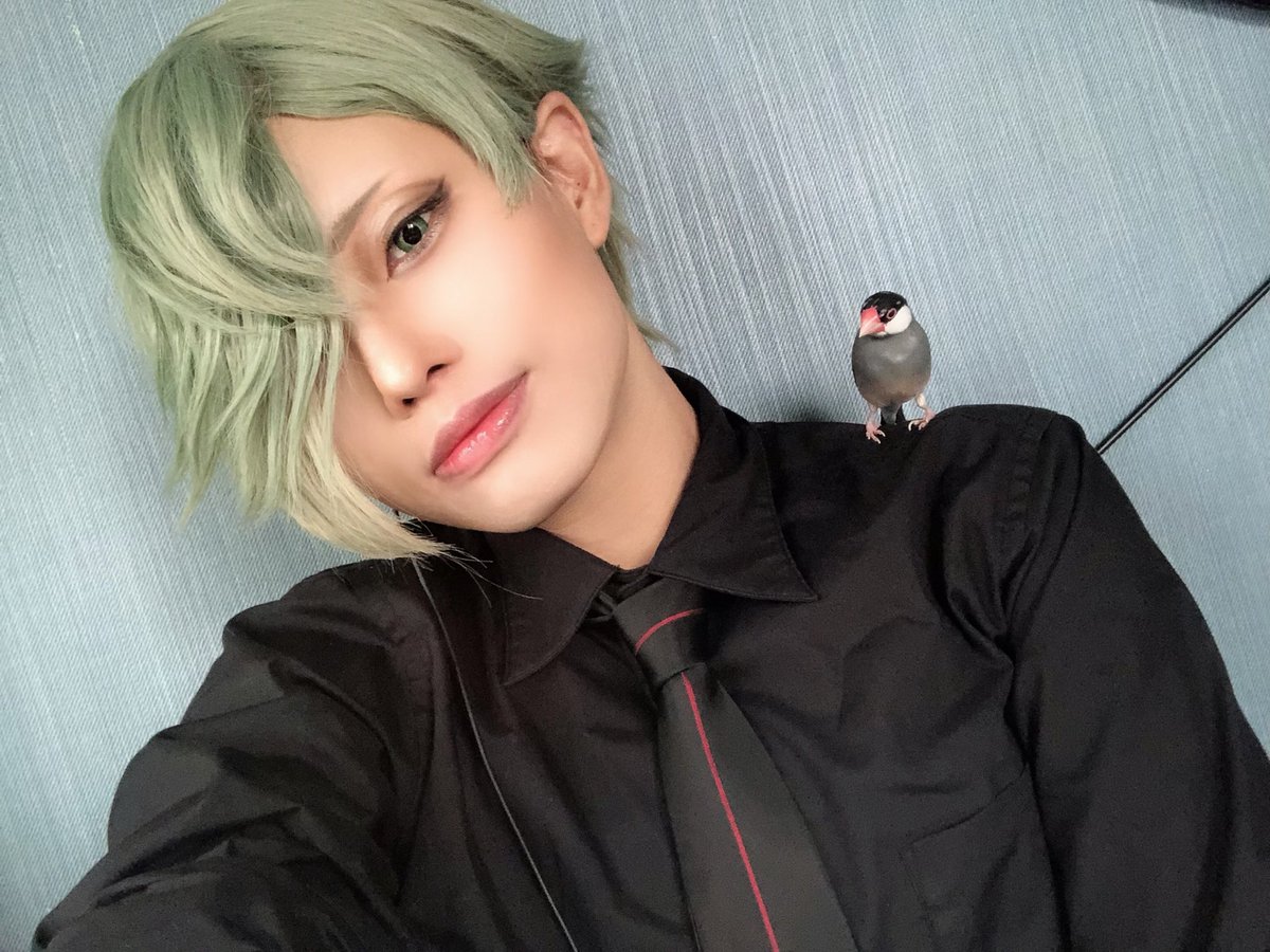 ネクタイはどう使ったらいいんだろ🤔 私服で宅コスでごめんね、可愛い鳥に免じて許して