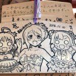 2 21 奉納絵馬の場所にR・L様(@rigyoupana ) の絵馬を見つけました😄 寝そべりちゃんのイラストが可愛いです😍 18/11/17 14:11