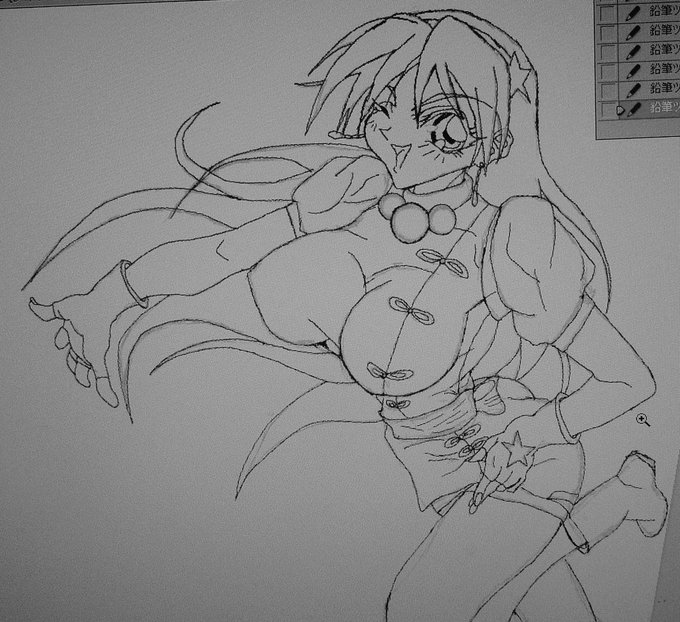 #格ゲーキャラ描こうぜ #麻宮アテナ 今、描いてるけど仕上げは間に合わなそうだから下書きで😅 ま、相変わらず大張監督の絵をトレースしてるだけなんだけどね💦 今回、初めて乳差分を描いてる🤣🤣🤣