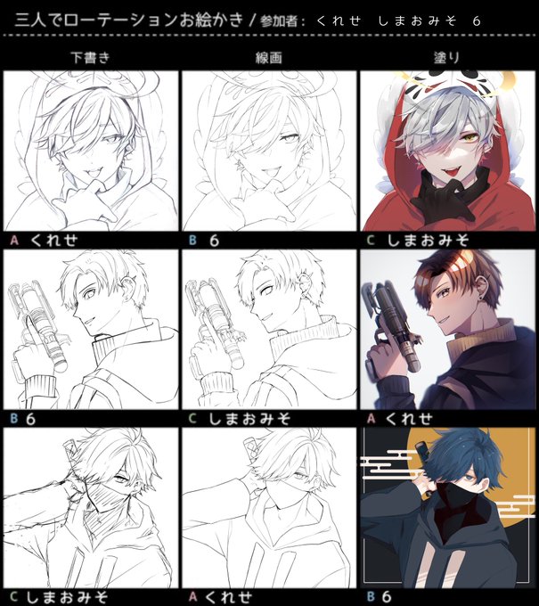 おみそさん、6さんとローテーションお絵描きしましたッ🥳🥳 どれも素敵に仕上がったので是非見てください……( ◜௰◝ ) (ツリーにメンションあります)