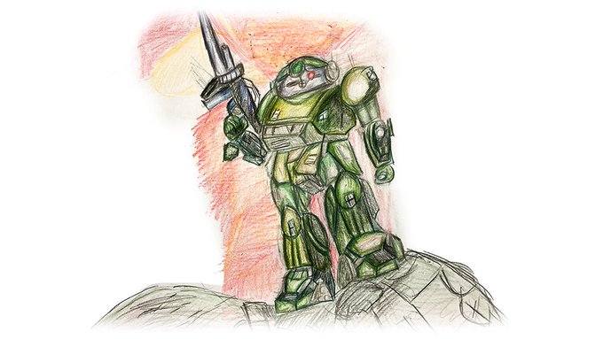 9 26 #装甲騎兵祭 にて展示された 玉野良介 @ntm053 さんの『Dog Doc』より「たぶんマーシィドッグ系のカスタム機」部分を描かせていただきました! 「整備中の機体は難しかったので」「汚しをがんばってみた🙄」とのことです😆 #ボトムズ #小5 twitter.com/ntm053/status/… 22/05/28 22:31