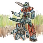 #装甲騎兵祭 にて展示された 玉野良介 @ntm053 さんの『Dog Doc』より「たぶんマーシィドッグ系のカスタム機」部分を描かせていただきました! 「整備中の機体は難しかったので」「汚しをがんばってみた🙄」とのことです😆 #ボトムズ #小5 twitter.com/ntm053/status/…