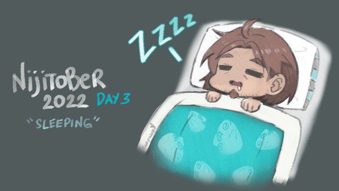 Day 3: "Sleeping" feat. Bonnivier Pranaja (ex-ID) For Bobon, sleeping is a luxury. He'd crawl into his futon (he says it's good for his back) and get as much precious sleep as he could, to energize him for another day. Ganbare, Om Bon! #NIJITOBER22 #bonnivierart