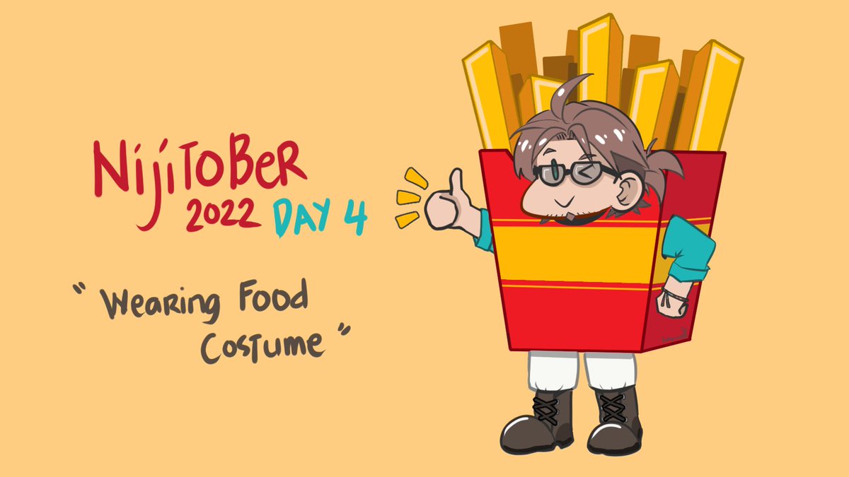Day 4: "Wearing Food Costume" feat. Bonnivier Pranaja (ex-ID) French fries is his comfort food because it's easy to cook and eat. Bobon is also well-known for his huge appetite~ A growing man's gotta eat lots, of course! #NIJITOBER22 #bonnivierart