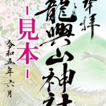 青森県「龍興山神社」様の御朱印の絵の部分を描かせていただきました。 6月4日、例大祭用 特別御朱印です。 🌸通常御朱印 初夏 も出来ました 当日受け取り・通販のネット予約は下記ツイートから。 置き型の御朱印です。実物は朱印が押されます。 龍の方は黄土色の部分が金印刷になっております。