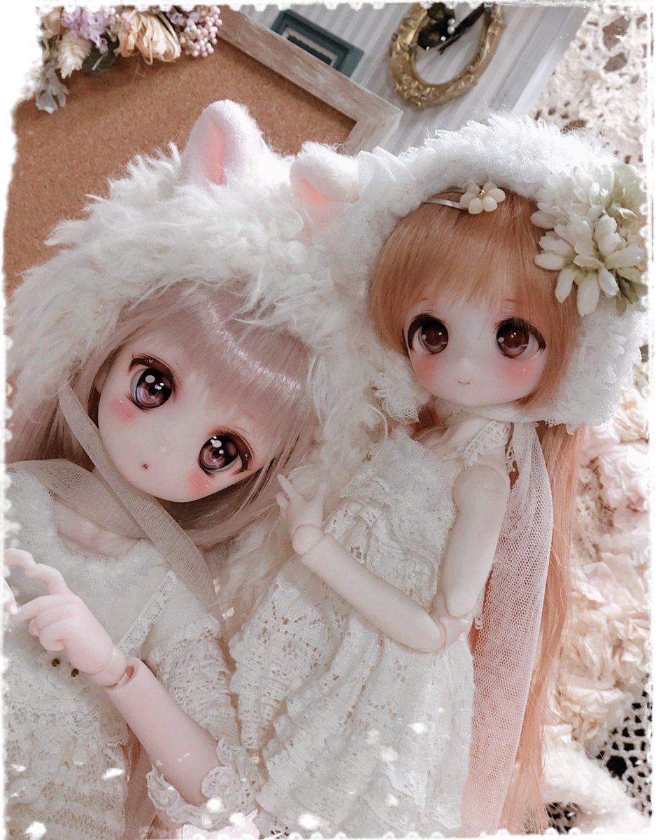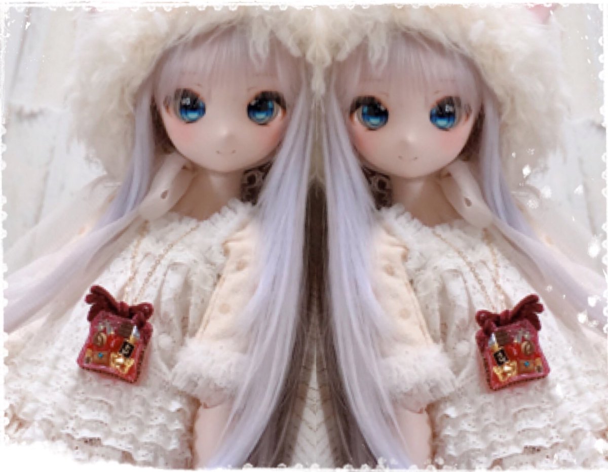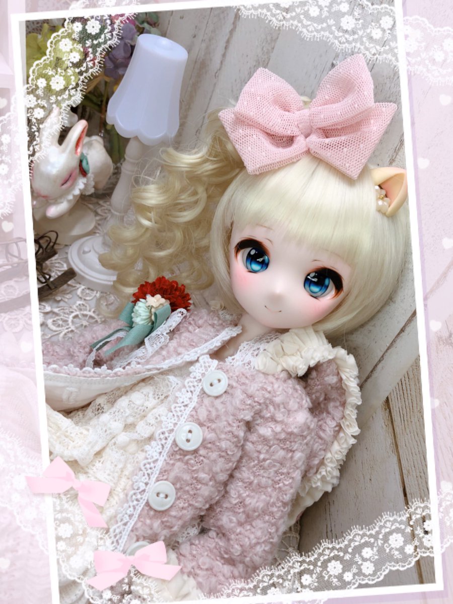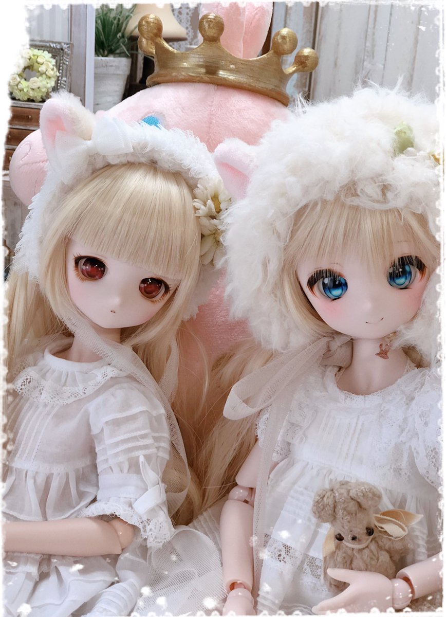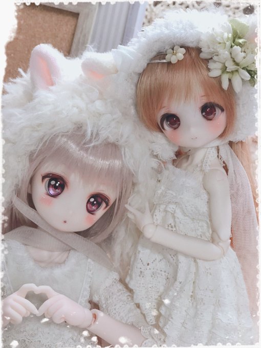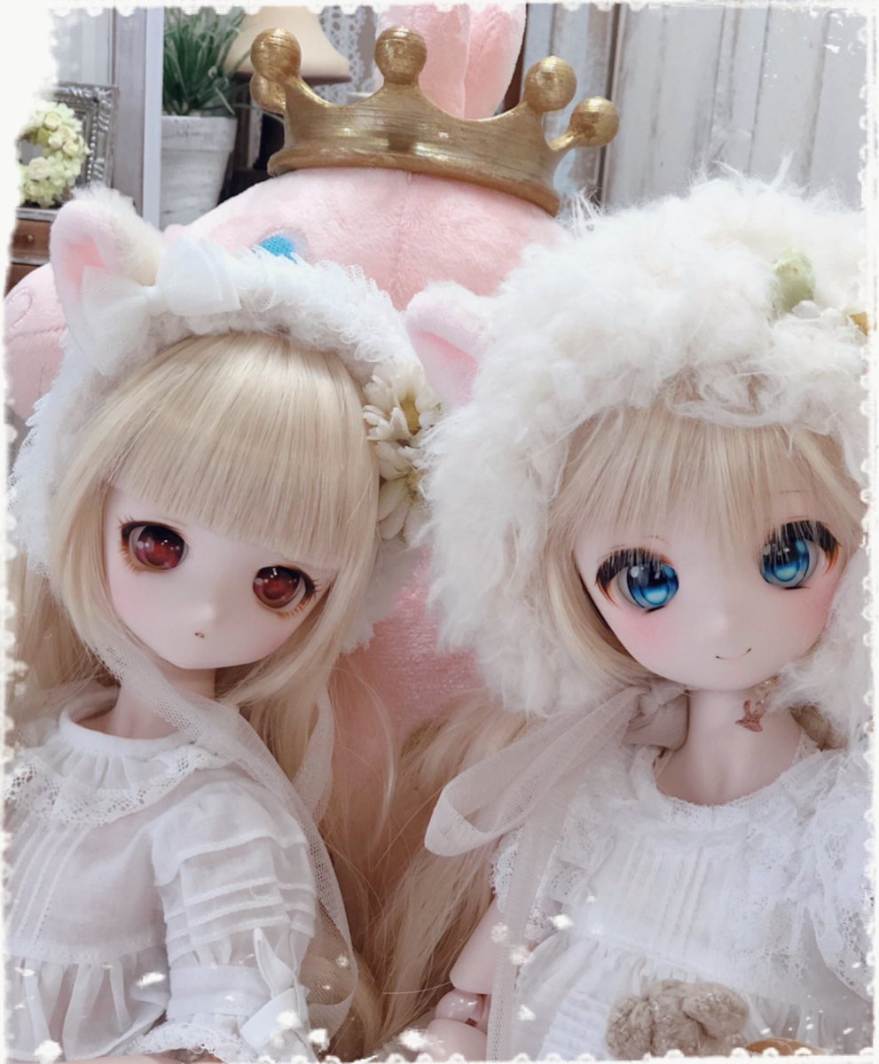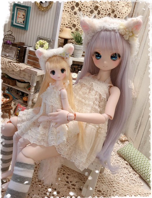 私の可愛いお人形さんの お人形さん(〃´-`〃)♡ 大きい子と小さい子 どちらも可愛い︎💕︎ #うちのこかわいい #チロルandリボン #MDDはいいぞ #狐花っこ