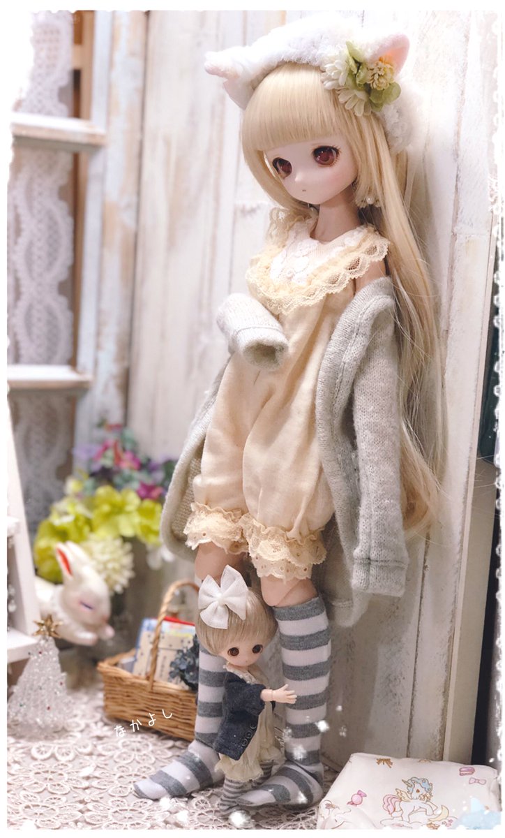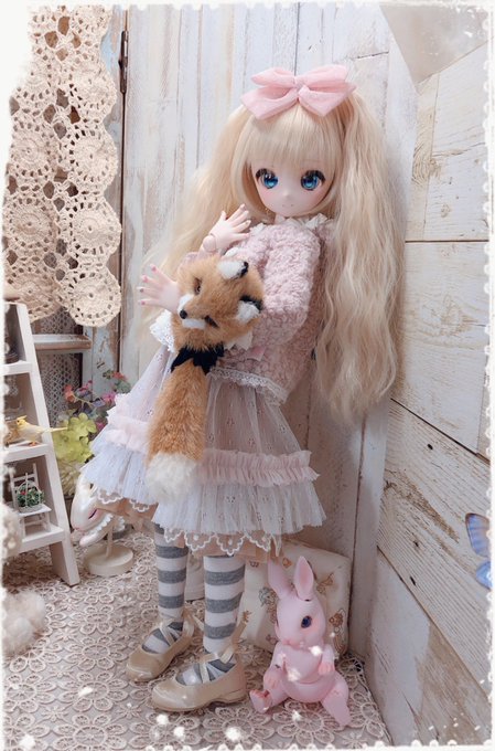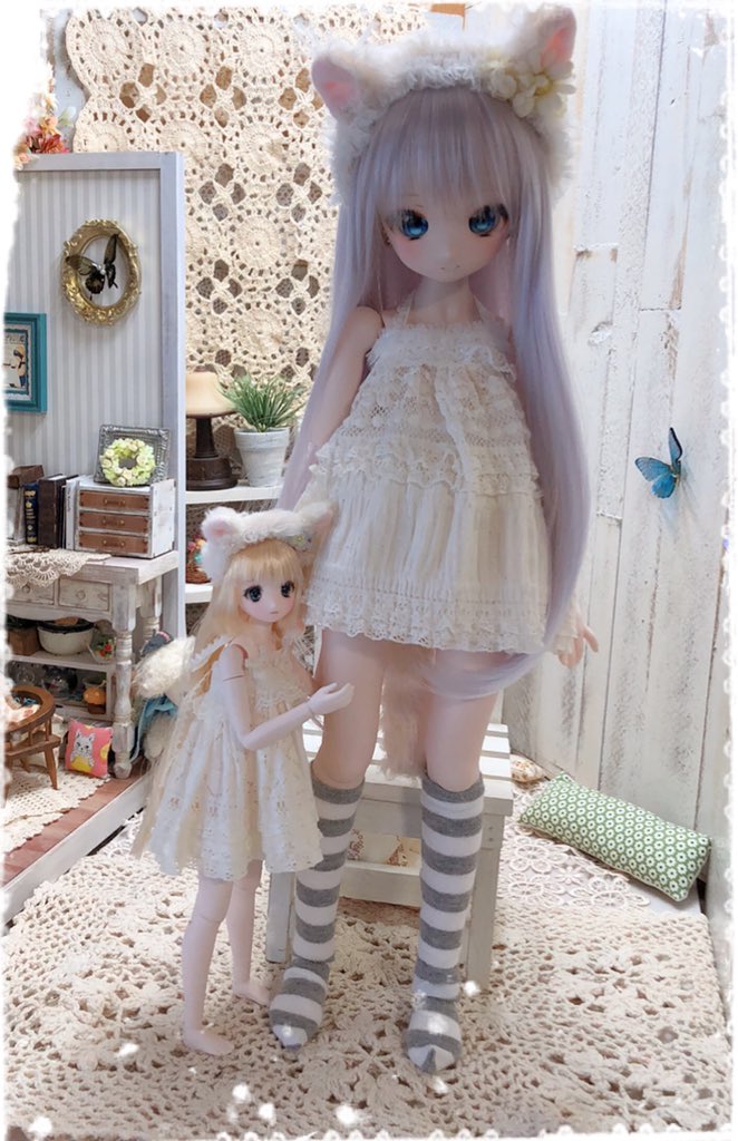 4 74 私の可愛いお人形さんの お人形さん(〃´-`〃)♡ 大きい子と小さい子 どちらも可愛い︎💕︎ #うちのこかわいい #チロルandリボン #MDDはいいぞ #狐花っこ 20/04/26 21:01