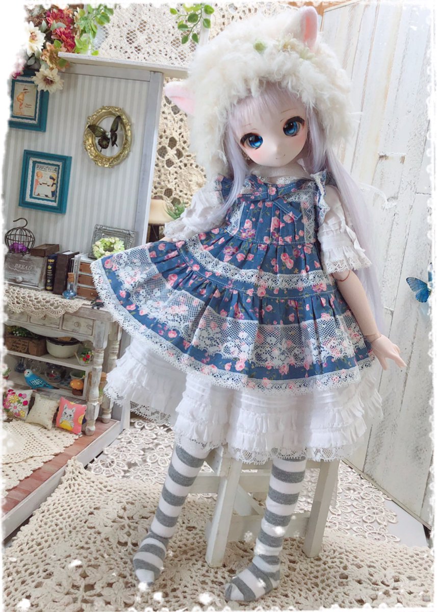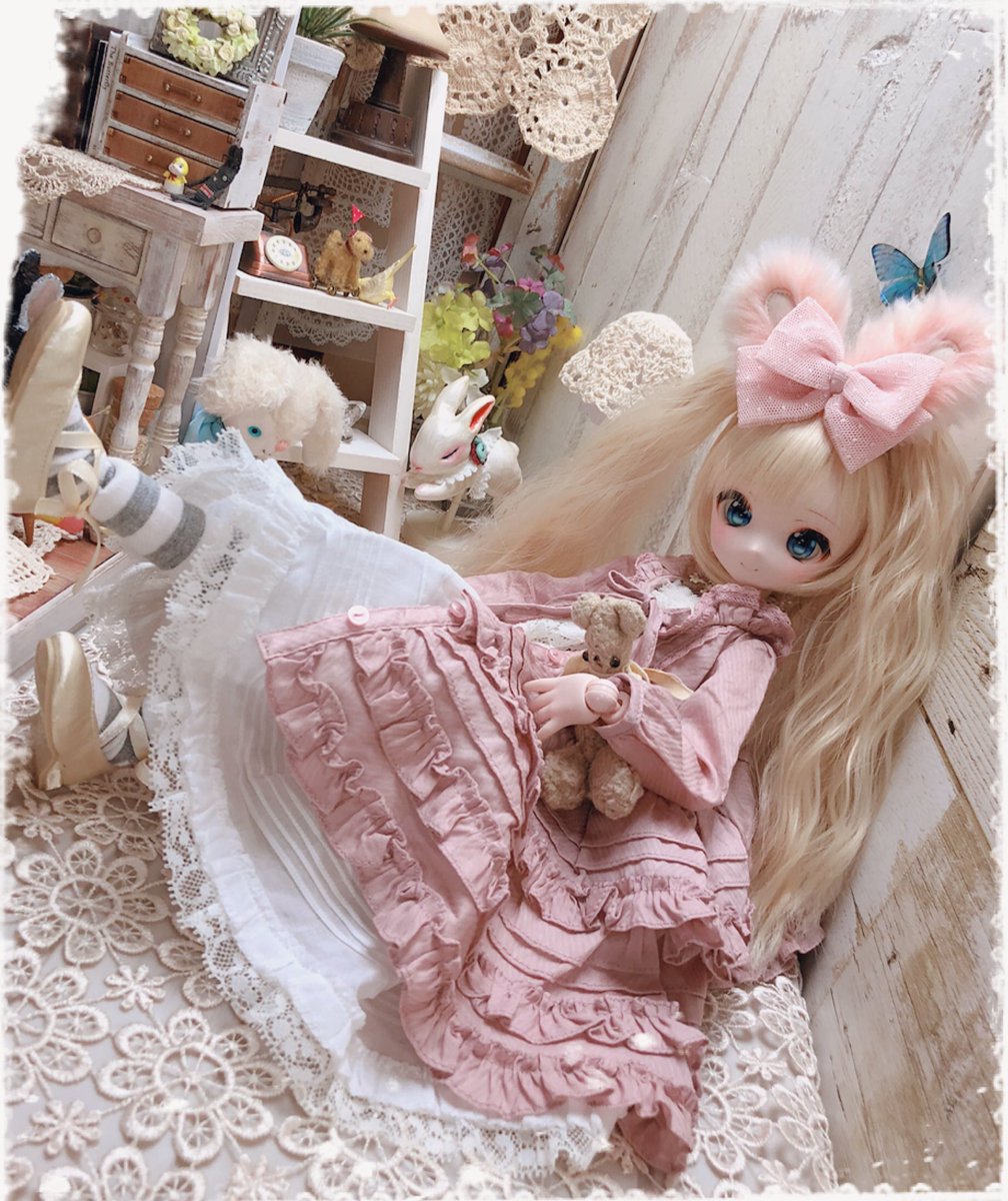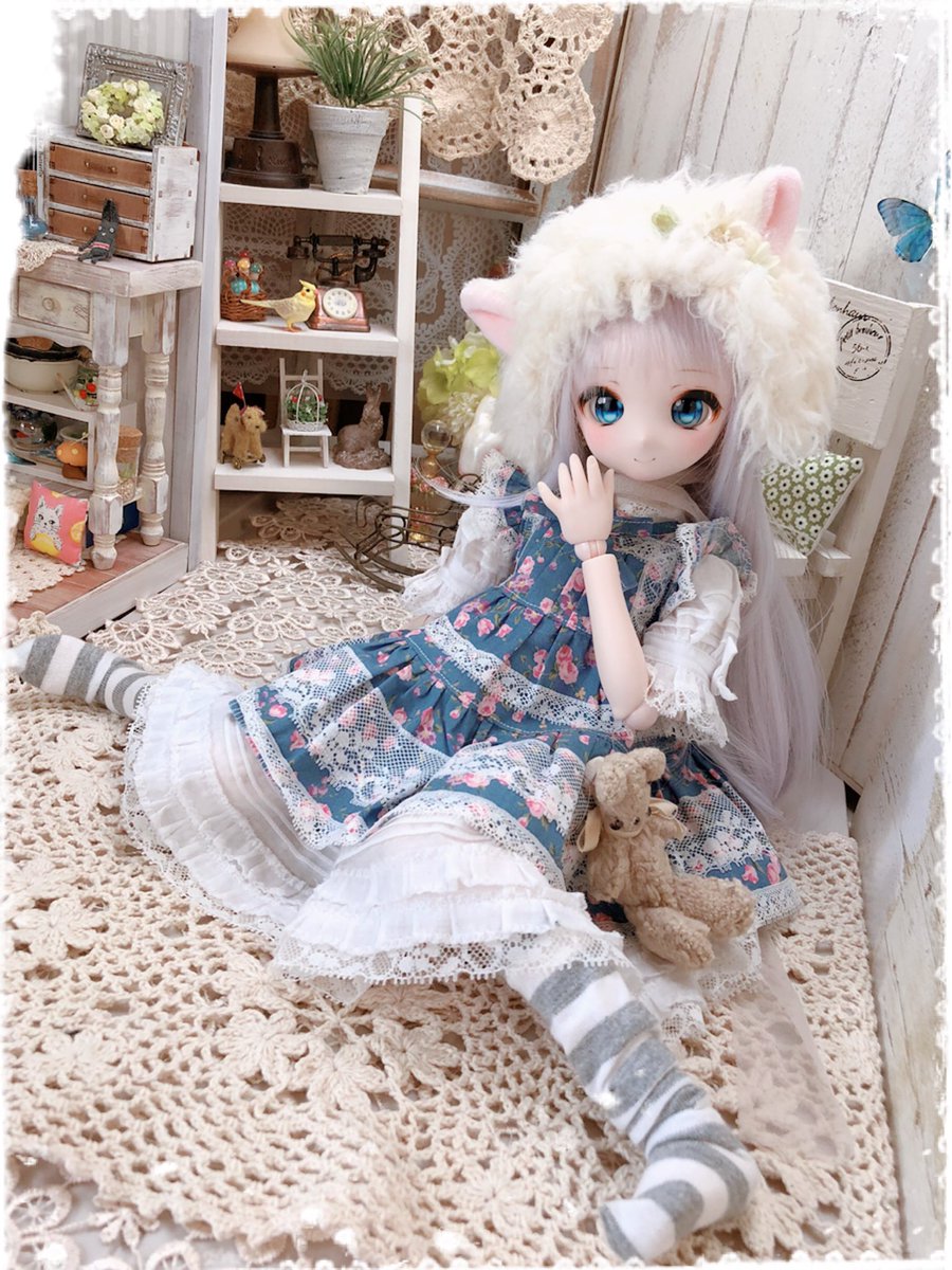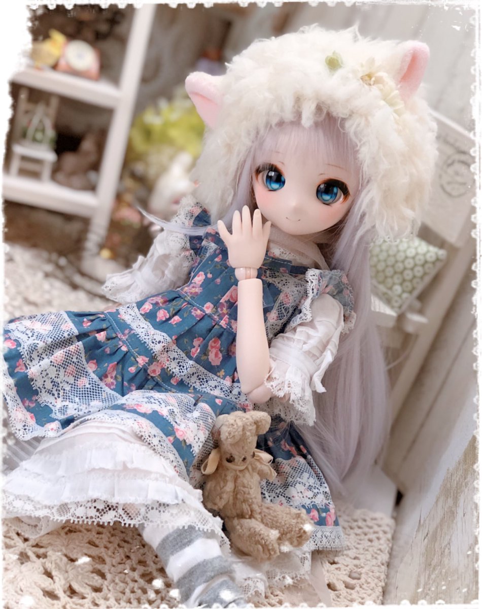 2 52 エプロンドレス最高(〃´-`〃)♡ ペチとドロワ履かせるのを忘れてた… このセット、ボリュームもりもりで 可愛いのです︎💕︎💕 #うちのこかわいい #MDDはいいぞ #狐花っこ 20/04/03 17:47