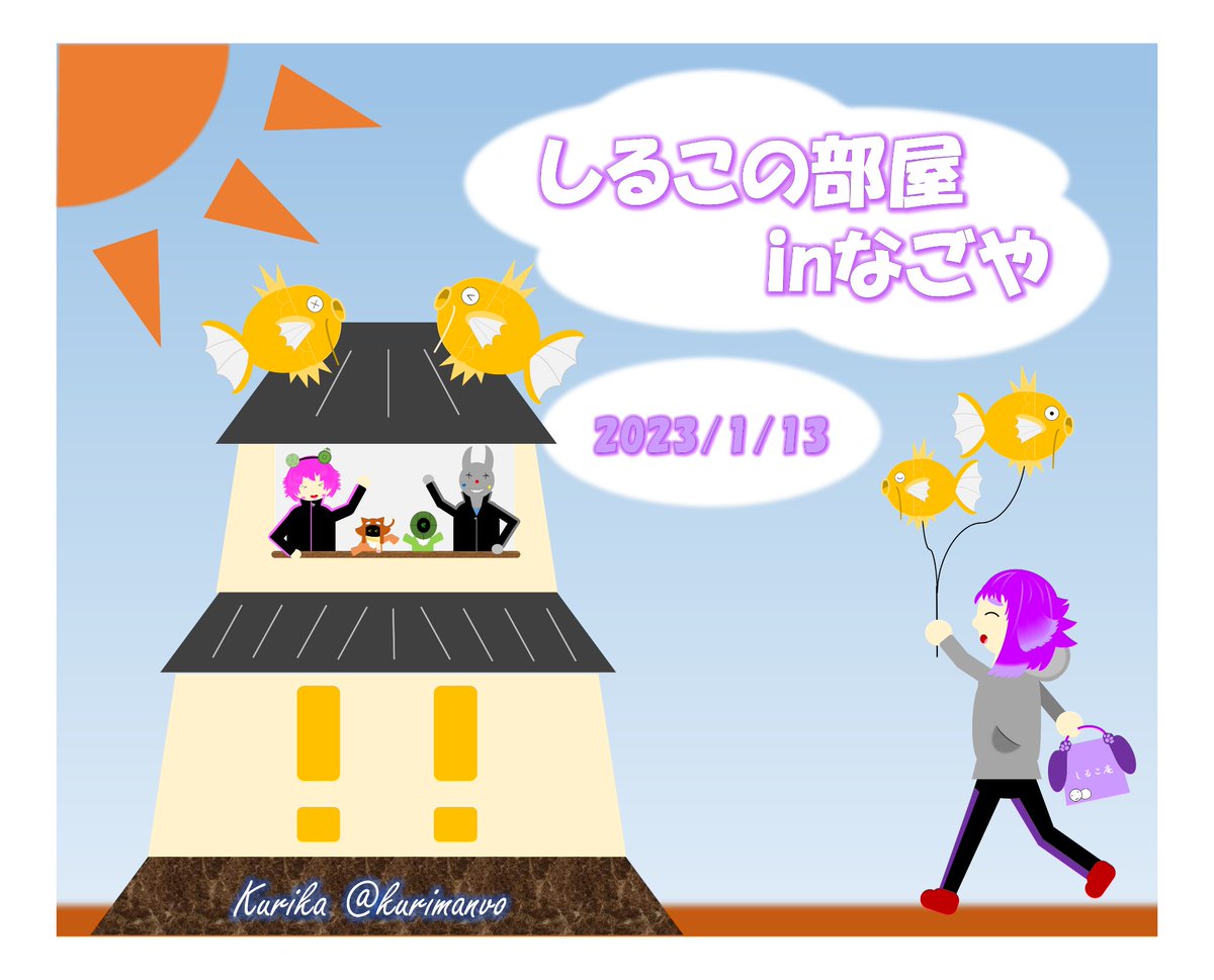 〜しるこの部屋in名古屋〜 名古屋ということで… 金鯱ならぬ金コイキング🐟 名古屋組🐻🐰ペアとベビ🤖🐱 はこたろ城📦🏯 しるこさんの手に持っているのは… お土産でしょうか(*´ 艸`)フフ💜 無事みんなが楽しめ完走できますように✨ #しるこの部屋 #bintrollFA