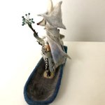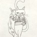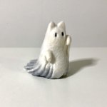 #モノクロームロマンチカ 『ぉ化猫』まねき 宇宙飛行猫の近くでフワリフワリしているこのお化けニャンコさん 実は黎明期の宇宙飛行猫さん達なのでした。夢を繋いでくれている後輩を見守っているのでしょうね 実物はもう少しグラデーションが柔らかいのですが…出来れば直に見て欲しいな👻❣️