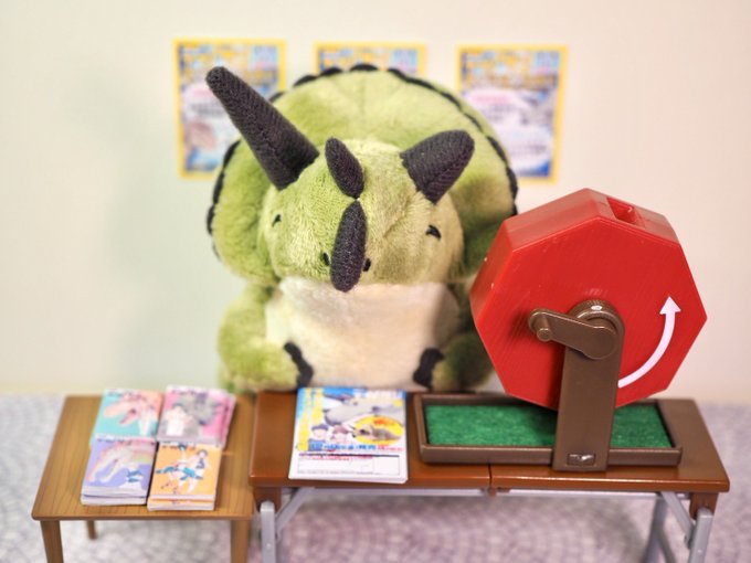 3 25 「19にちは ちゅうせんかいだよ~ みんなあそびにきてね~ ぼくのよやくもしてくれたら うれしいなぁ~」 #ぬい撮り #ぬいぐるみ #オモ写 #ディノサン #dinosaursanctuary 23/08/10 12:42