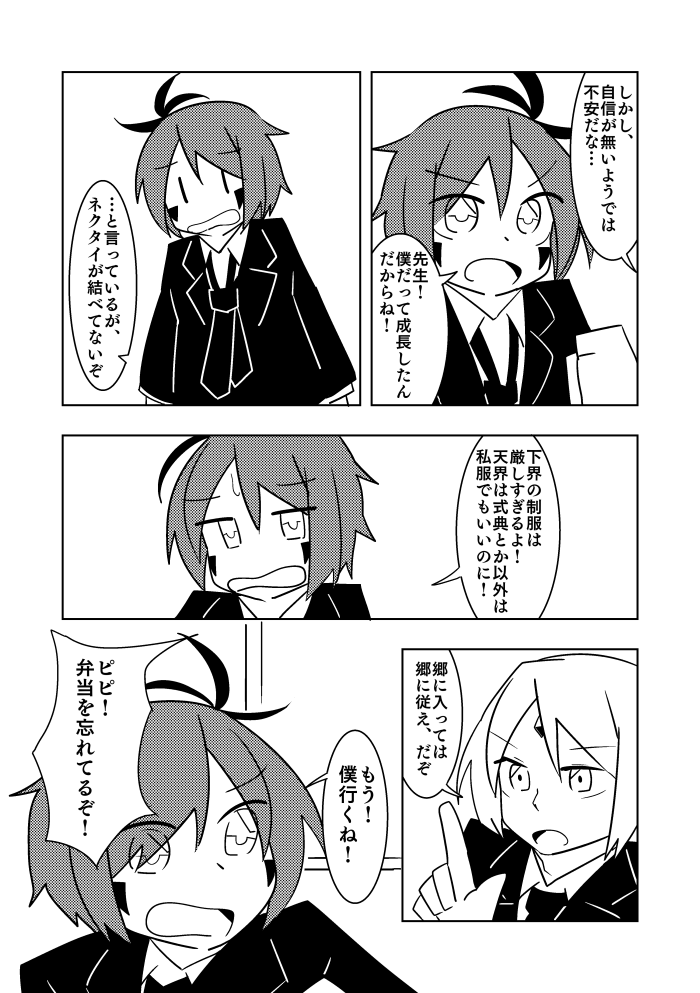 一人前になる試験に落っこちた半人前の天使が下界の学校に行く話…なのですが今回は同級生の不良とそのパシリが主役。 Angel's mission6話、今日からTwitterとマンガハックにて上げていきます~!(全部上げたら随時pixivでまとめます) #漫画が読めるハッシュタグ