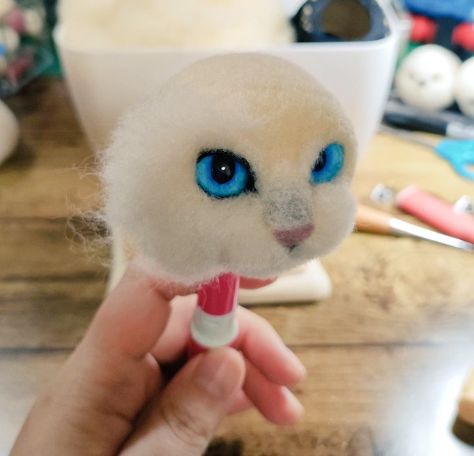 0 2 真っ白子猫ちゃんどんなポーズにしようかな〜 #羊毛フェルト #woolfelt #needlefelting 22/08/10 15:08