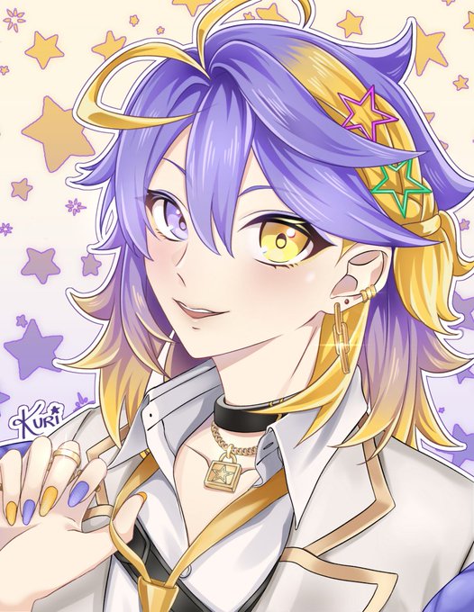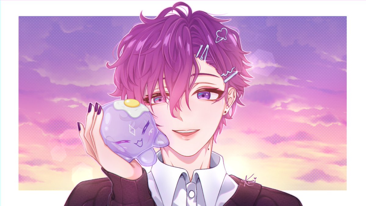 no border and no text versions! ☆ ~(^▽^人) 💜 #VioletAtelier #UkiThumb 💜 Uki high school au design credits to Kanishiima-san! tysm orz #NoctyxBacktoSchool