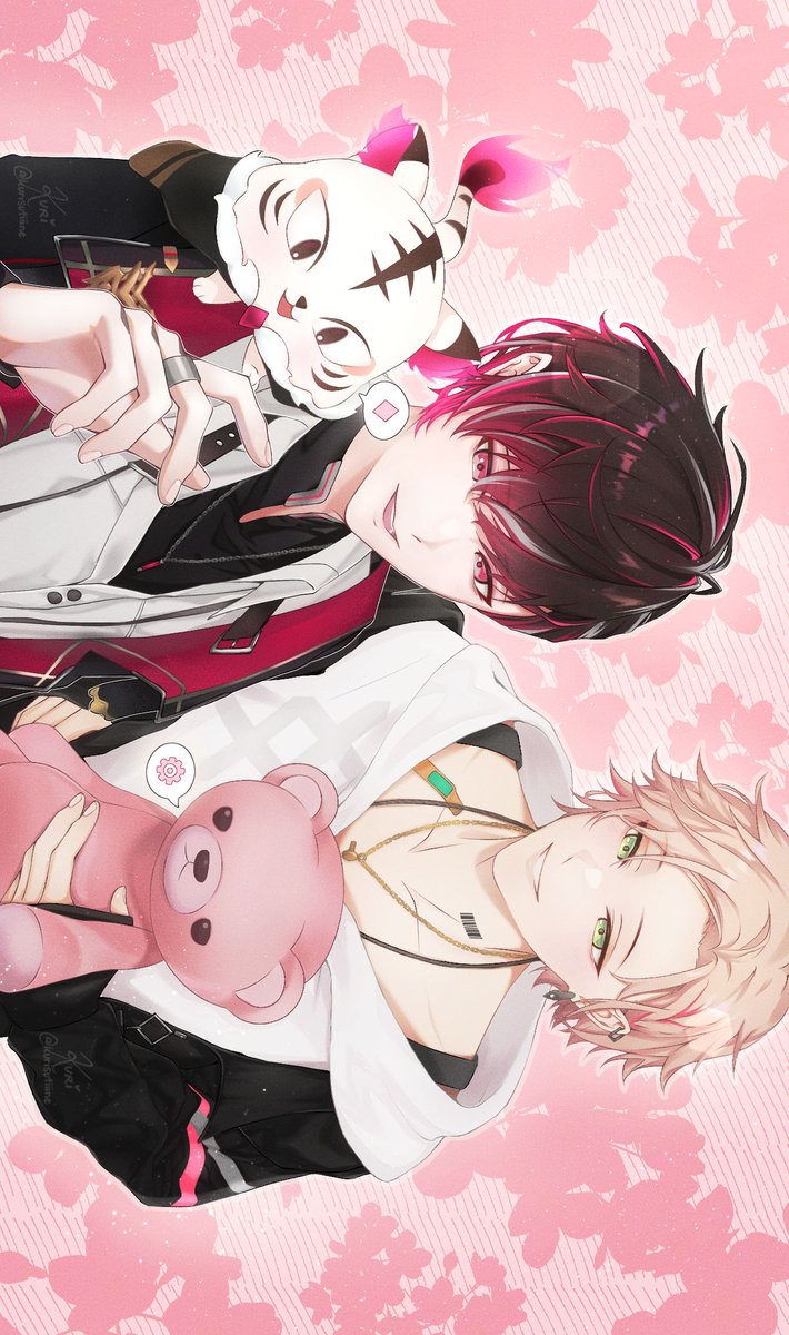 Christmas gift for my first and newest oshis, rikkun and kaichou! 🎁✨ #LouVerGallery #りつあーと fuyuomi brothers + mascots pog ⚙♦️🐯 (^▽^)/\(^▽^)