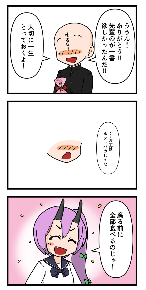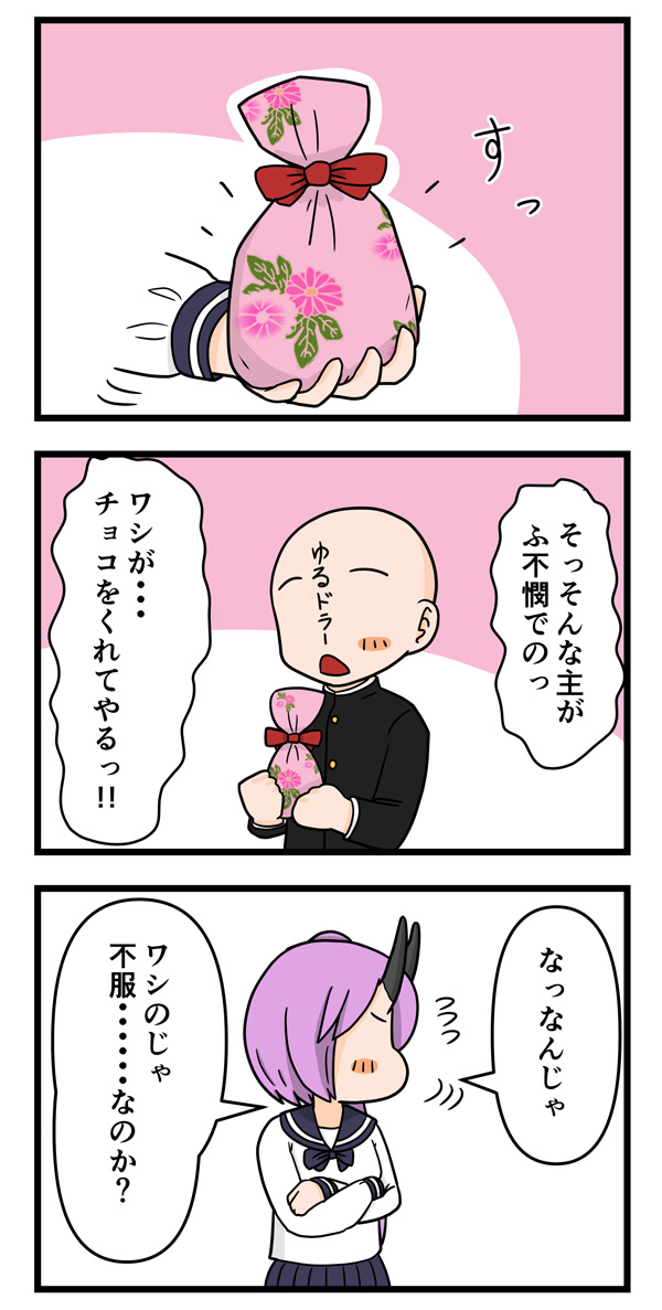 11 34 バレンタインリクエスト ラスト サタンの存在しないバレンタインイベの記憶(1/2)。 多くのリクエストありがとうございました(*´▽`*) #ゆるドラファンアート 22/03/17 14:38