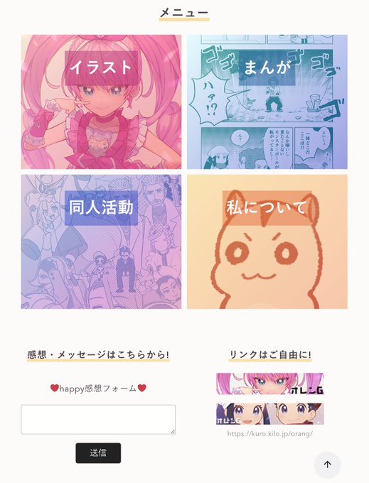 WordPressで個人サイト作ったので見てちょ〜〜👆 200×40のバナー作ったし過去の同人誌も約40冊ぶん読めるよ👆 kuro.kilo.jp/orang/
