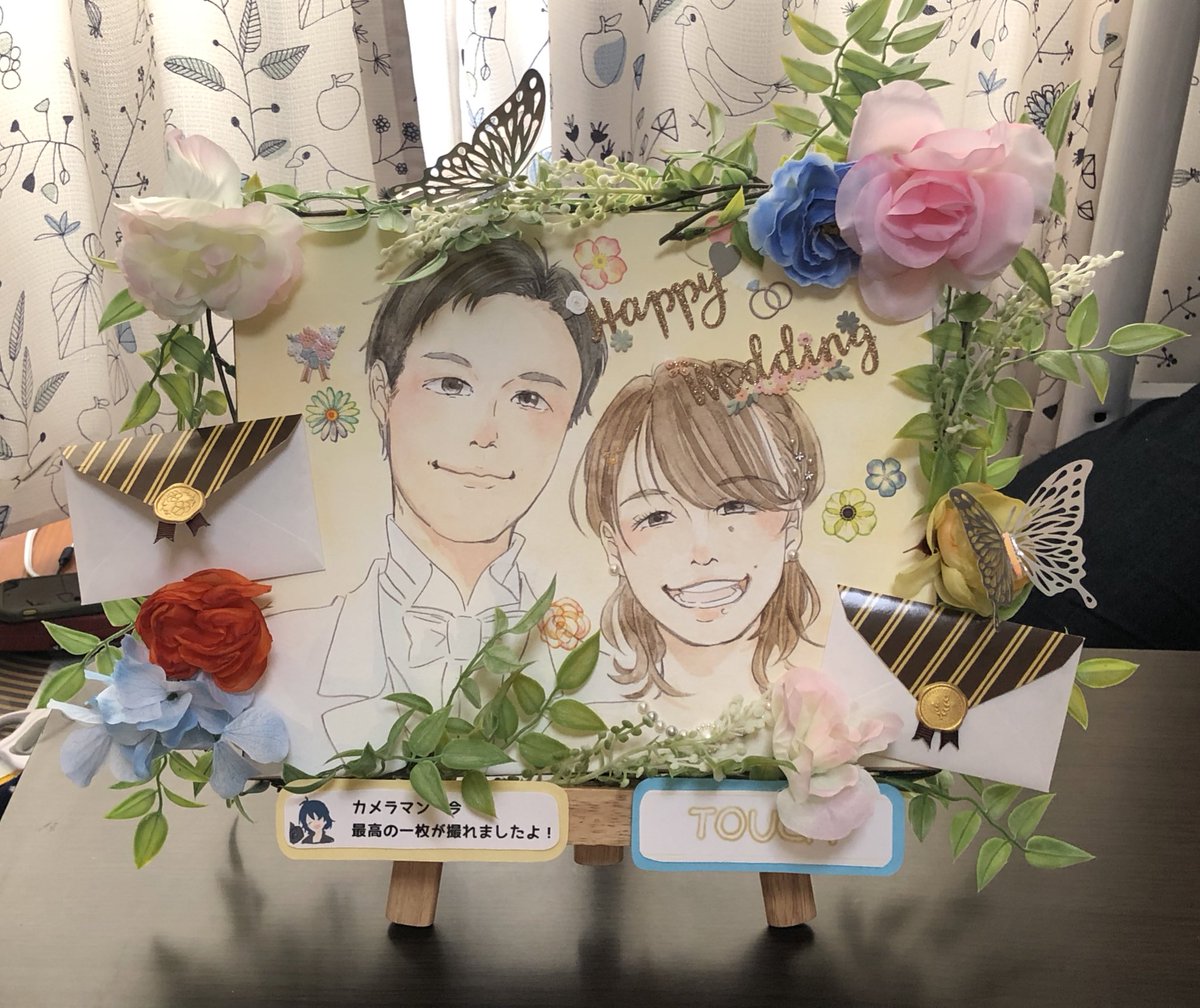 1 9 いつメン各位に許可を頂いたので。 この約3年間で似顔絵描かせて頂き、いつメン8人で作ったウェディングボードを是非見てほしい🥺🙏 どれも皆気持ちを込めて作った大事な作品です╰(*´︶`*)╯ 皆末永くお幸せにね😘 23/03/12 22:22