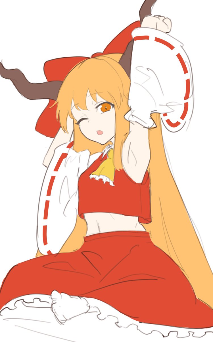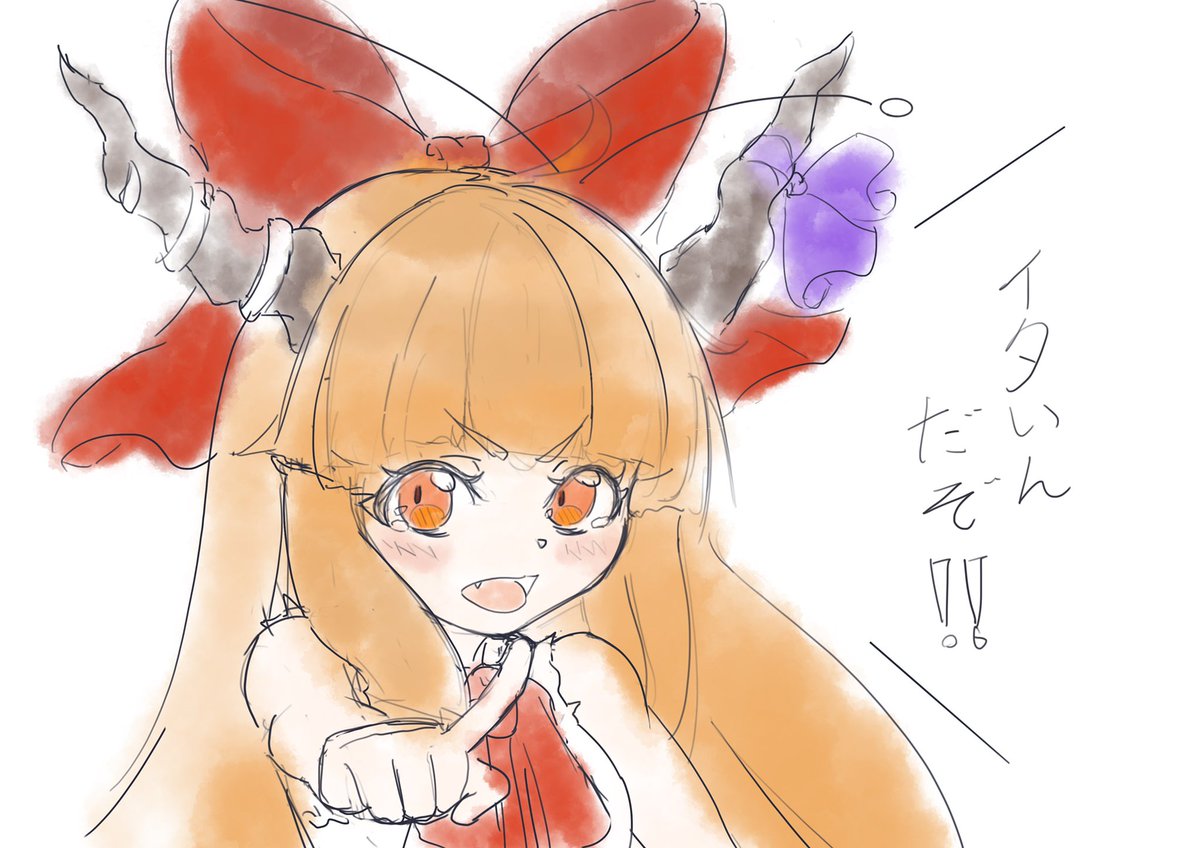 28 81 昨日描かなかったのでお詫びに描きました萃香ちゃんです。 いつもと違うテイストです。お納め下さい。 21/09/28 17:42