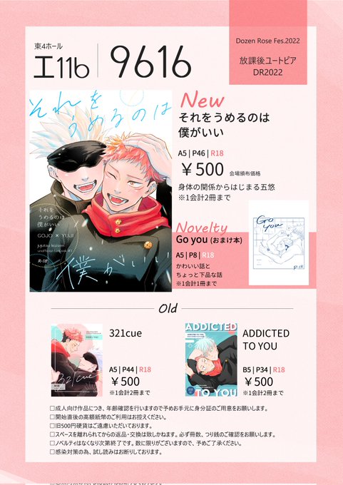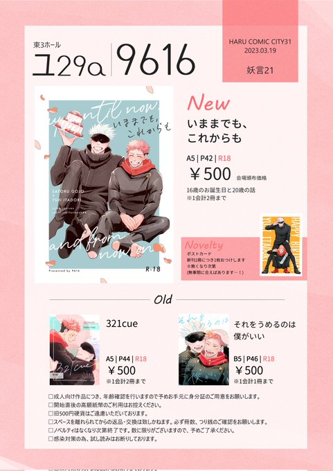 【サークル参加します!!】03月19日(東京)HARU COMIC CITY 31内 妖言 21| #イベントGO_赤ブー akaboo.jp/event/item/201… 五悠で参加します!ゆじお誕生日本出せたらいいな…!!